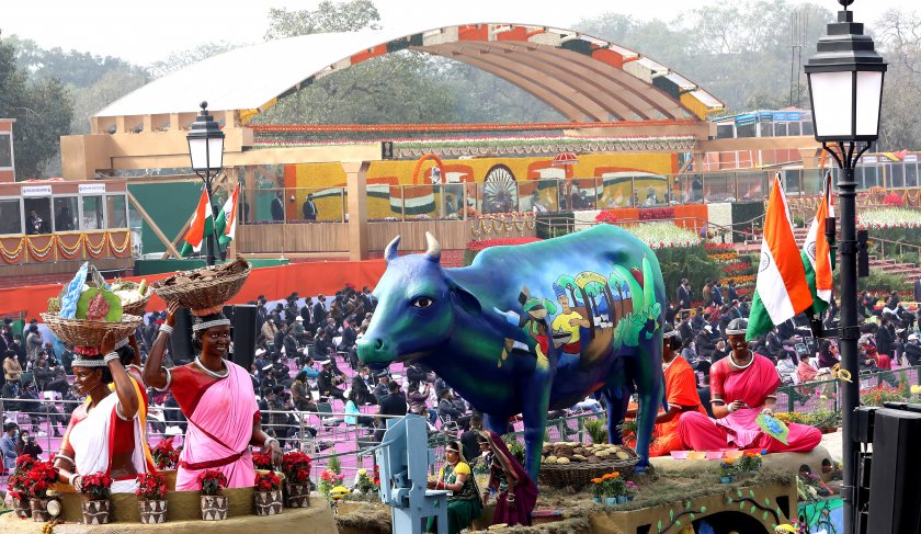 Танцьори, служители на реда, военни елементи, платформи и реализатори на каскади на мотори минаха в церемониал от президентския замък по необятния бул. " Раджпат ". Премиерът Нарендра Моди, министри от държавното управление и задгранични дипломати приветстваха участниците в парада.