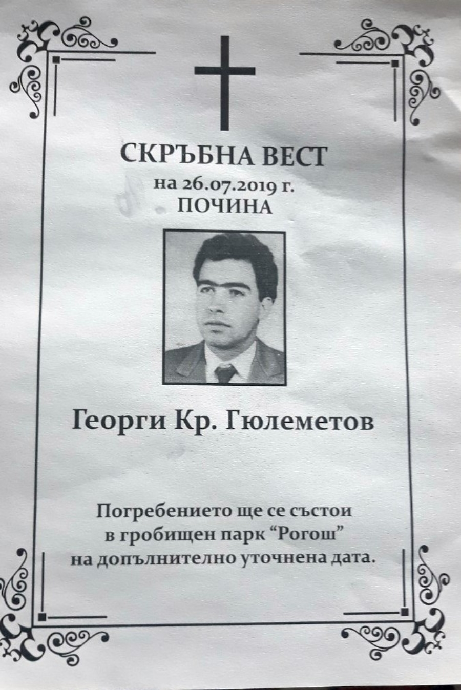 И тъкмо там незнаен към този момент недоброжелател разлепи подправената скръбна новина.