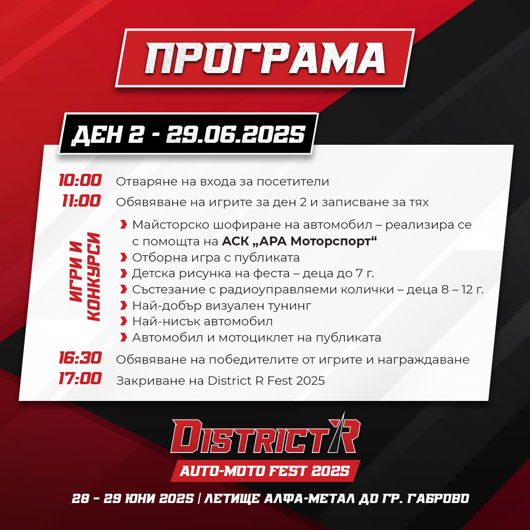 Ден 2 (неделя) – 29.06.2025 година
