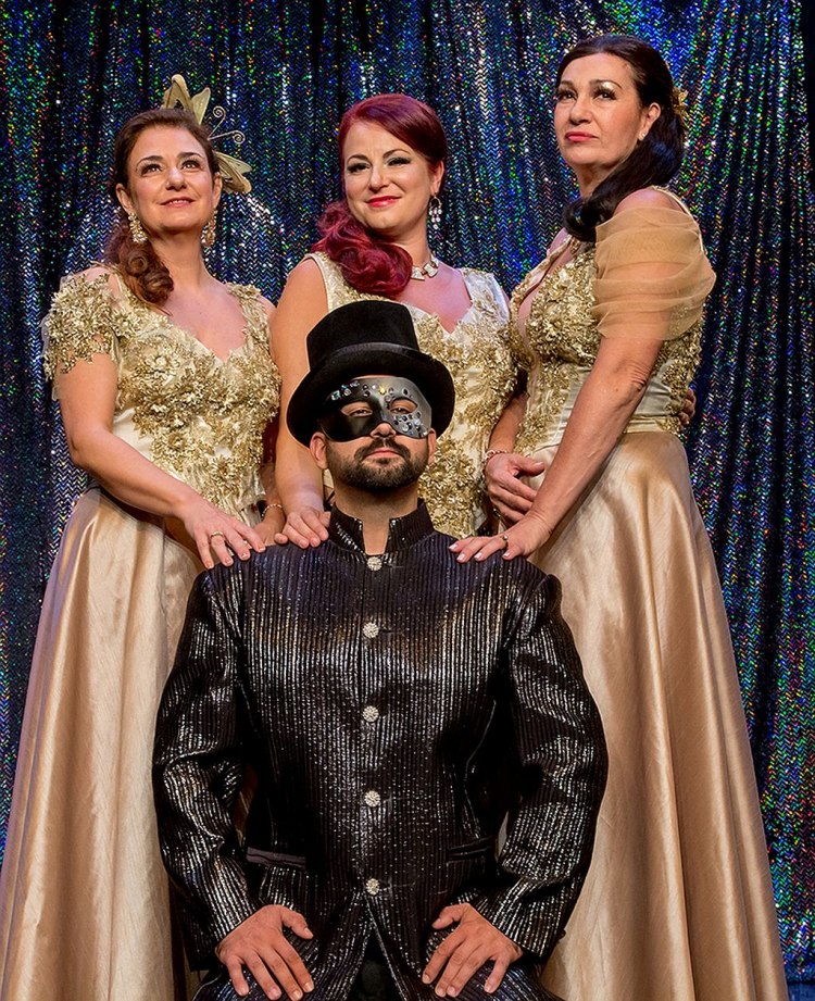 Докато вършат комплицирани акробатични номера, изкусни клоунади и играят на въздушен обръч, артистите на театъра извършват и комплицираните арии и дуети от оперетата на Калман.