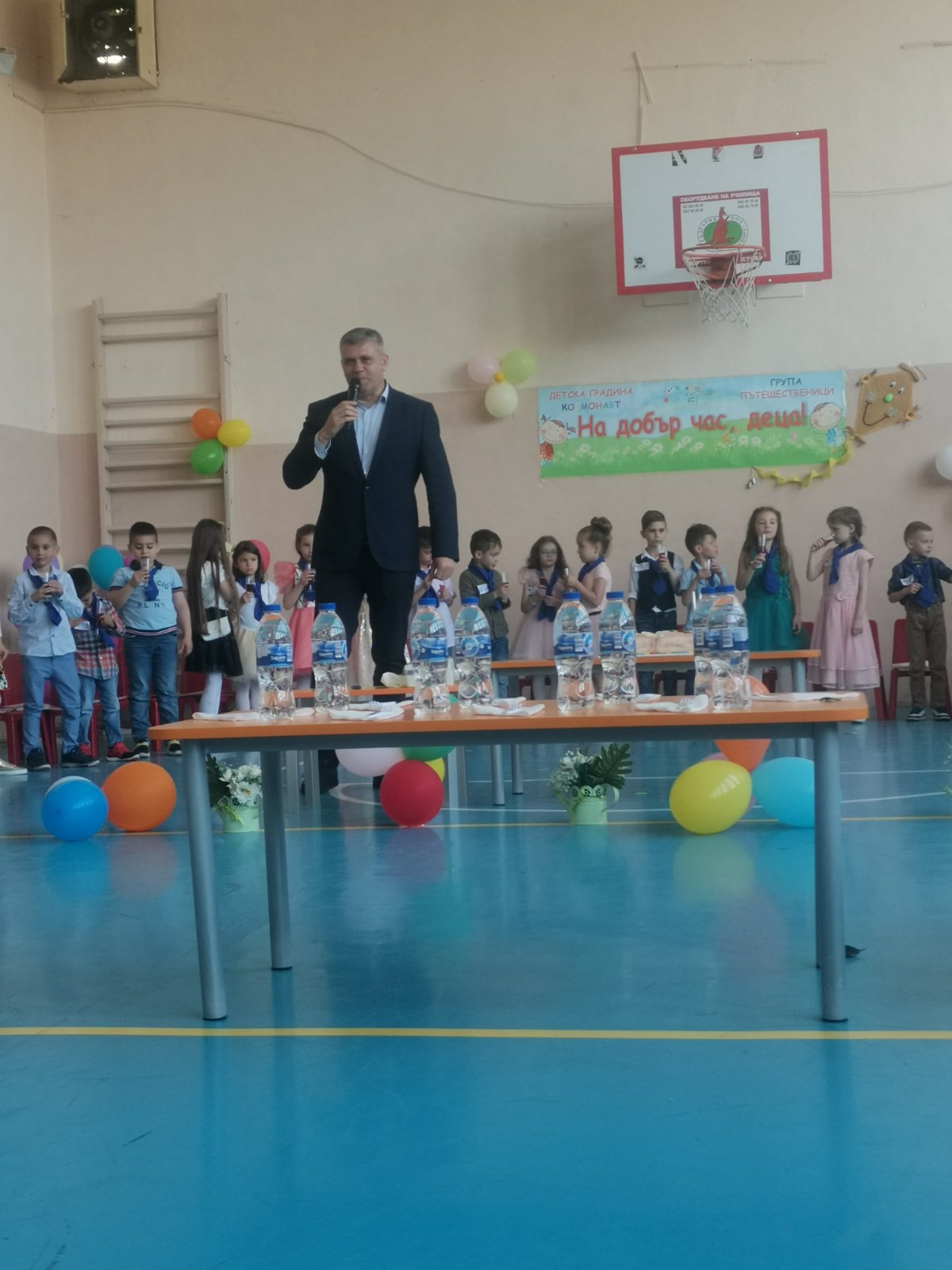 На 30.05 2023г. децата от група " Пътешественици " от ДГ " Космонавт " и техните учители приготвиха необикновено празненство по случай последният ден на децата в детската градина. Гости на празника бяха кмета на регион Северен Стоян Алексиев, Директора на ДГ " Космонавт " - Десислава Тотева, която раздаде свидетелствата на бъдещите първокласници и им пожела " На добър час! ". Господин Алексиев сервира благодарности и цветя на всички дами от екипа и прочете благодарствено писмо към тях от Силвия Митрова - родител на дете от групата.