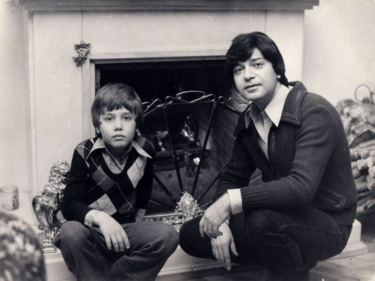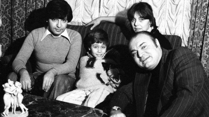 Емил Димитров със брачната половинка си Мариета, дребния Емил и композиторът Васил Андреев - управител, текстописец и обичан мъж на артиста