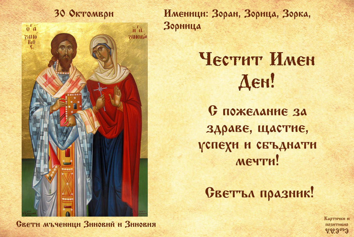 На 30 октомври православната черква отбелязва деня на Светите мъченици Зиновий и сестра му Зиновия.
