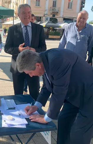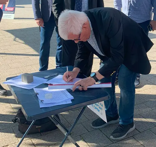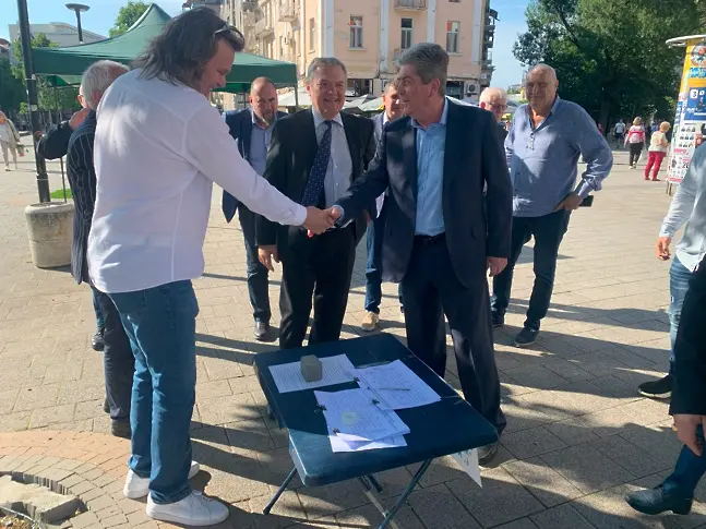 Президентът на Р България /2011 – 2021 г./ Георги Първанов, ръководителят на Политическа партия АБВ Румен Петков и лидерът на листата за 15-ти Плевенски МИР за изборите на 9-ти юни за Народно заседание, проф. Янко Янев поддържаха подписката, проведена в поддръжка на стадион „ Белите орли “ в Плевен.