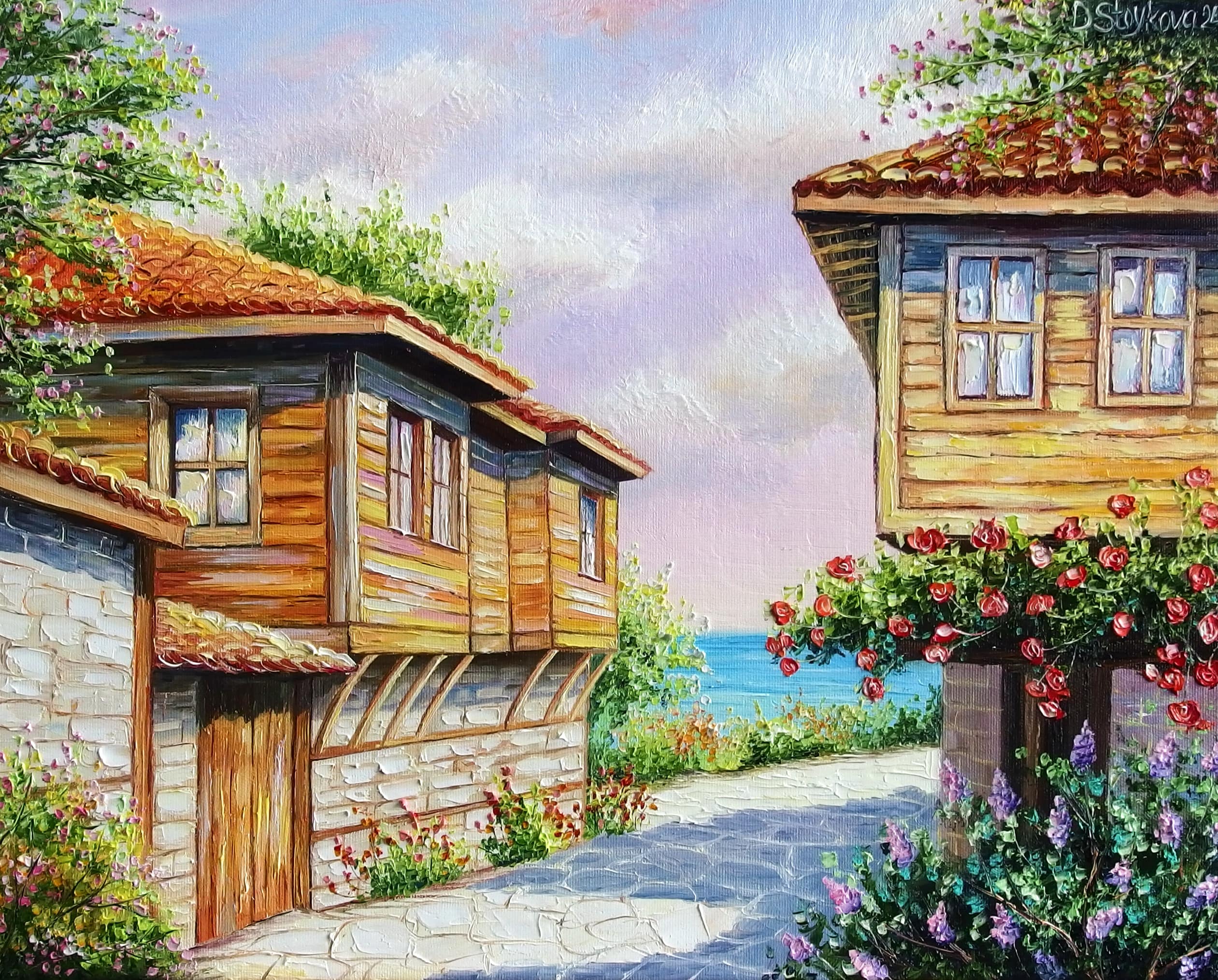 Снежната магия на България е уловена в платна, които пресъздават заснежените улички на остарели български селища. Топлите светлини от прозорците на греят и основават чувство за уют,...