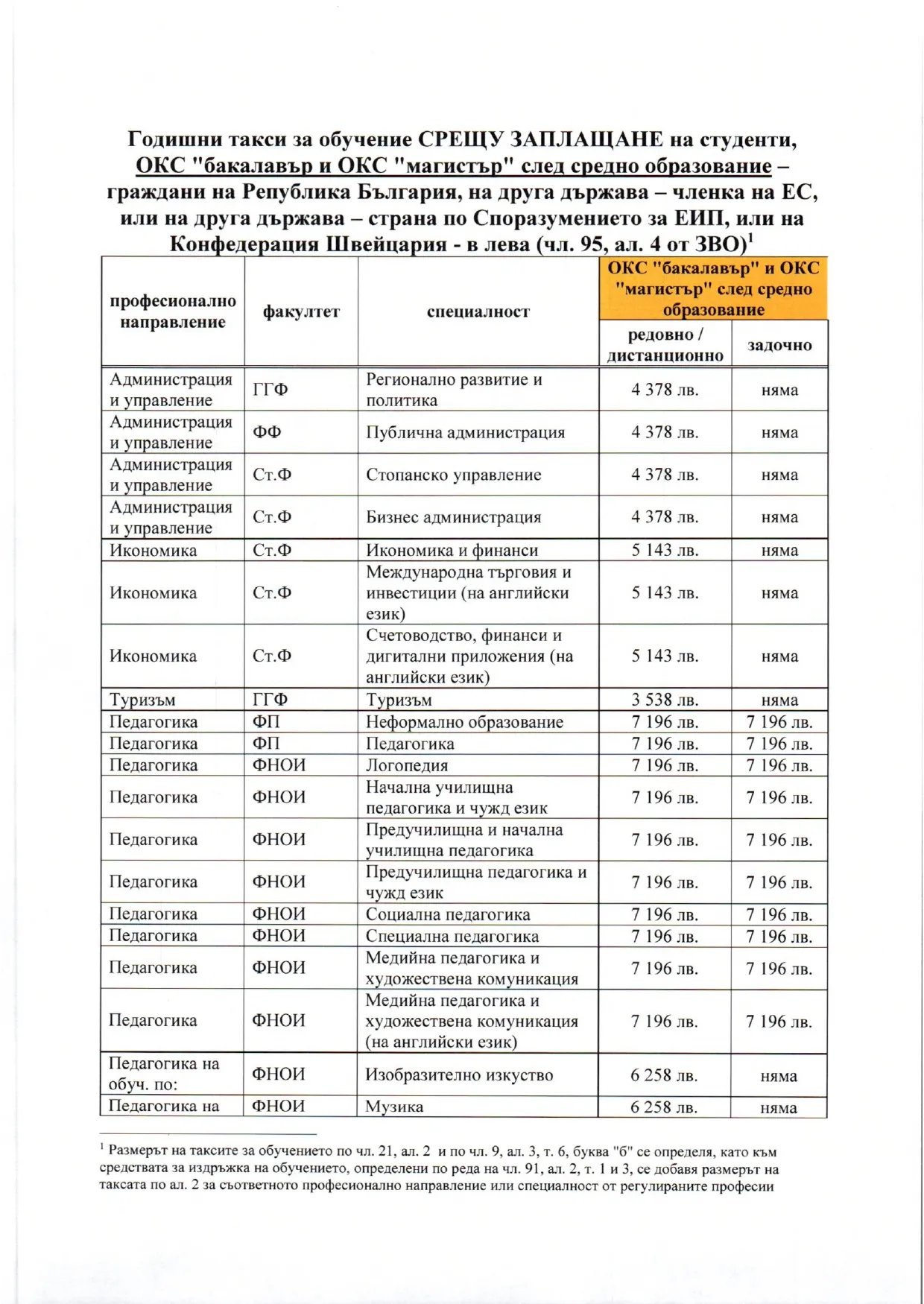 Цялото приложение с таксите за платена форма на образование за уч. 2025/2026 г. на студенти в ОКС „ бакалавър “ и „ магистър “ след приблизително образование може да намерите по-долу в публикацията.