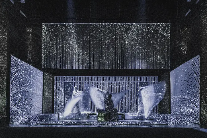 " Коприна " е извънредно впечатляващ театър, в който всеки подробност е изкусен до съвършенство - сценография, костюми, видео дизайн, музика, саунд дизайн, които поддържат пълнокръвно изключителната актьорска игра на цяла плеяда артисти. Резултатът е луксозно зрелище, от което не можеш да откъснеш очи. Представянето му в Бургас е като част от афиша на VI Фестивал на изкуствата Порт Прим Арт Фест, с уредник Гранд хотел и СПА Приморец.