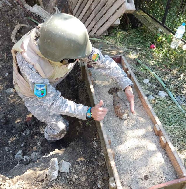 Формирование за неутрализиране на невзривени бойни муниции от състава на военно формирование 32040 – Крумово направили разузнаване, превозване и заличаване на корозиралата 82 мм мина за минохвъргачка.