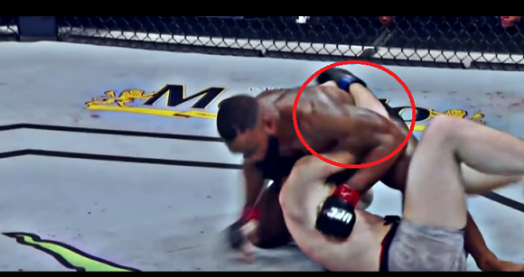 Шампионът в полу-средната категория избра втория вид, който не разрешава той за загуби горната позиция в битката, което в ММА дуел е от изключителна значимост. Успехът на неговото Дарс душене в този момент зависи от това дали той може да се пребори китката на оувърхук ръката да стигне колкото се може по-надалеч към лявото ухо на Дарън Тил, тъй че острата част на предмишницата да бъде в директен контакт с врата и артериите.