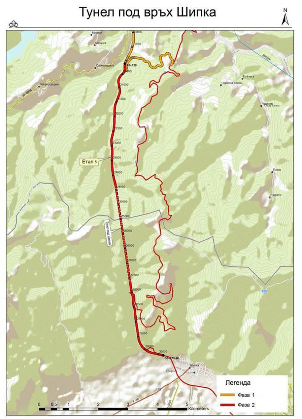 АПИ Тунелът под връх Шипка ще е на 1 км западно от прохода Шипка и на 1 км източно от връх Малуша. Северната част на тунела ще бъде в област Габрово, а южната в област Стара Загора.