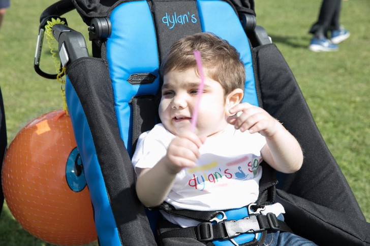 Вече девет години Дилън към момента седи на столче за хранене и в столче за кола, когато се вози. Спи в креватче, къпе се в бебешка вана и се движи в бебешка количка. Но най-лошото е, че родителите би трябвало непрекъснато да реанимират сина си: той постоянно има пристъпи на апнея, при които дишането му ненадейно стопира за половин минута.