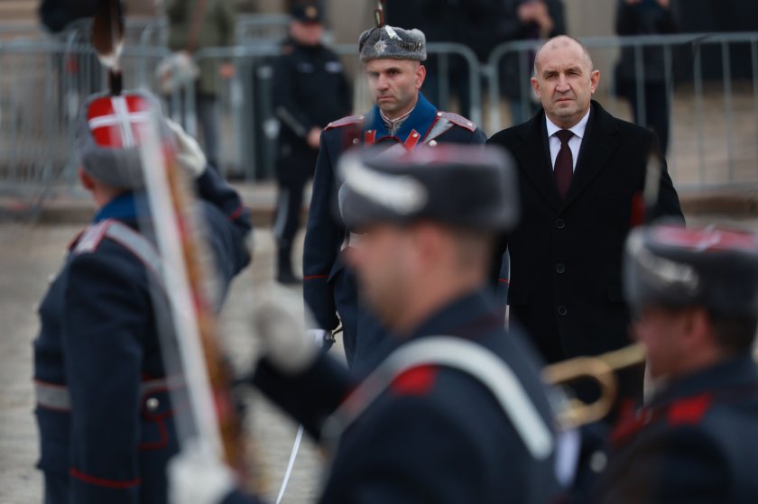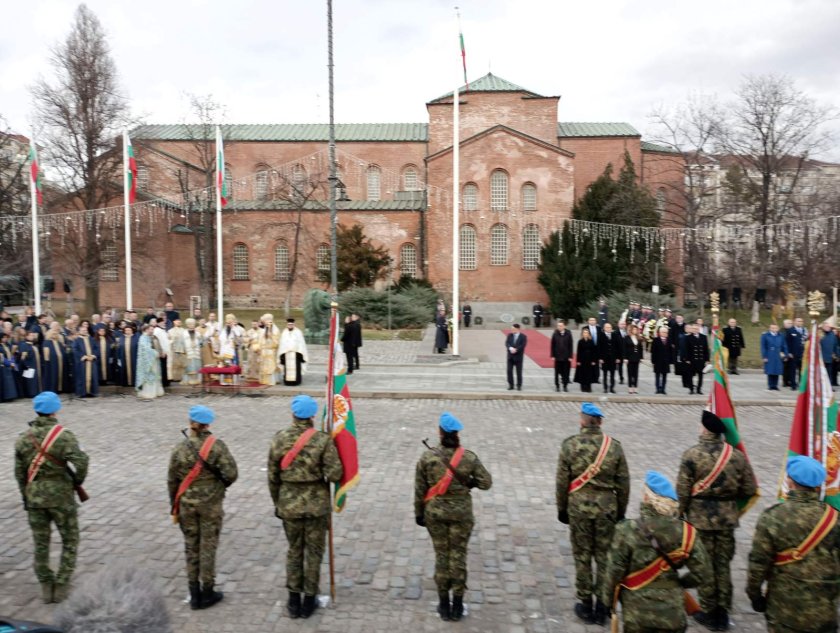 Президентът Румен Радев одобри почетния гвардейски строй, а патриарх Даниил отслужи церемониален водосвет на бойните флагове, знамената светини и щандартите (бел.ред. персонализиран флаг) на българската войска.