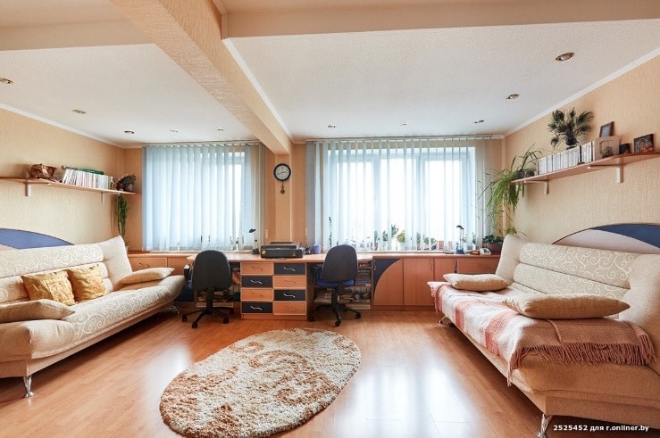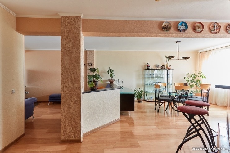 Новият апартаментът е с обща повърхност от 121.6 кв.м. Той се се намира на 7-ия етаж на 9-етажна панелна постройка и се продава посредством услугата Onliner.by за Щатски долар 135 хиляди.
