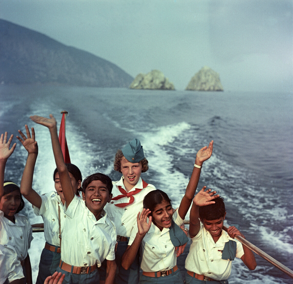 На фотографията по-долу се виждат руски и индийски деца на разходка в Черно море.