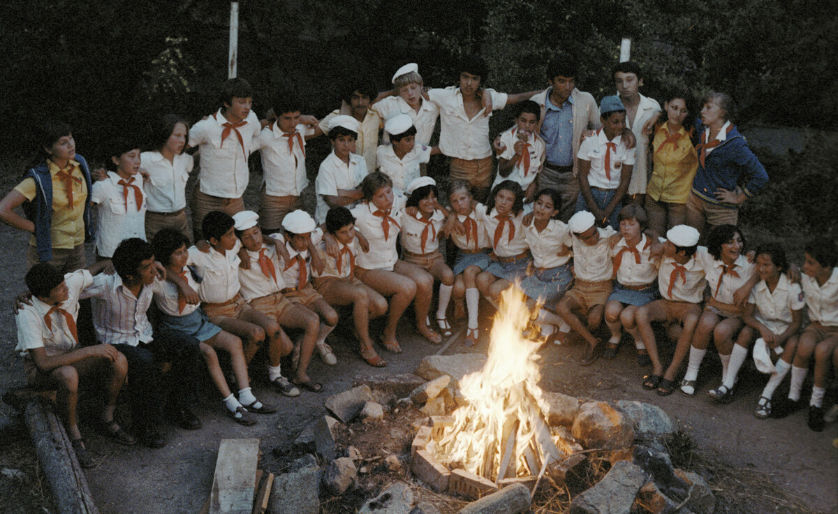 Николай Малишев/ТАСС В последната вечер има хубава традиция за палене на „лагерен огън“, към който децата =, които си потеглят, се събират, приказват си, споделят секрети и усеща и пеят песни.