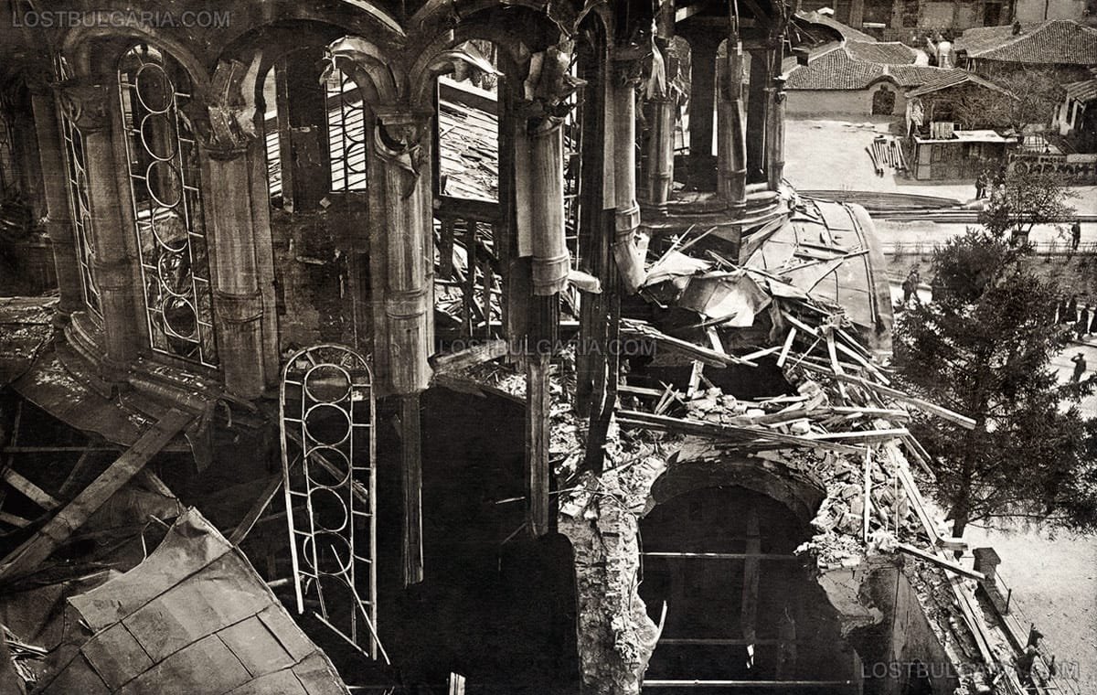 Храмът " Света Неделя " в първите дни след атентата, осъществен на 16 април 1925 година Сн. Изгубената България