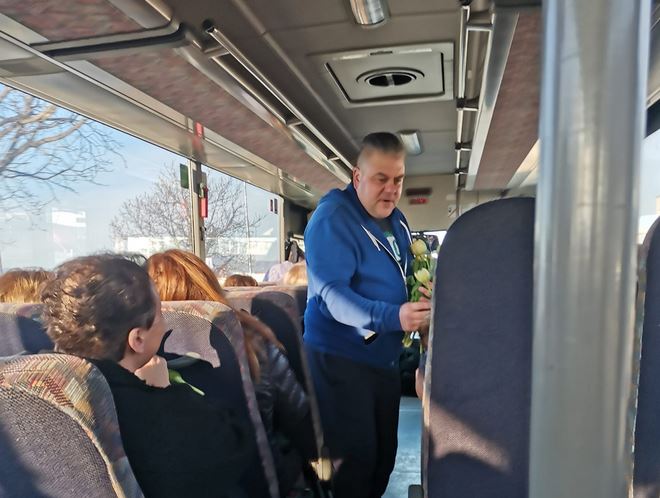 На днешния ден честват всички дами по целия свят, а джентълмен зарадва тези от тях, които пътуваха с рейс в Карлово.