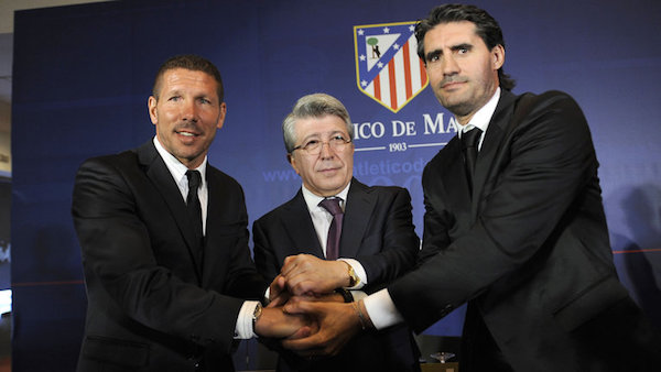 отпада от конкуренцията. За заместител на Мансано е избран някогашният състезател на отбора - аржентинецът Диего Симеоне. Преди завръщането си в Атлетико към този момент като треньор, Симеоне е треньор на аржентинския Расинг Клуб. Още в първия си сезон отпред на Атлети Симеоне извежда клуба до спечелването на трофея в лига Европа. Това обаче е единствено началото. Под управлението на Чоло Симеоне Атлетико последователно се утвърждава като най-сериозният съперник на колосите Реал Мадрид и Барселона на домашната сцена, само че се превърща и в сериозен фактор в Европа.