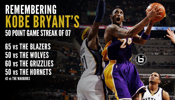 Само 24 часа преди подвига си против Хорнетс, Коби вкарва 60 точки на Мемфис Гризлис. Само през второто полувреме гардът осъществя 36 точки, а " Езерняците " изтръгват успеха със 121:119. Началото на серията пък Коби слага с 65 точки против Портланд Трейлблейзърс, а по-късно той вкарва 50 на Минесота Тимбъруулвс.