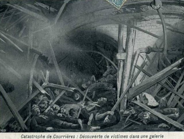 През 1906 година става най-голямата индустриална повреда в мина в Евро па. В град Куриер в Северна Франция умират 1099 души, в това число и деца миньори. Отговорността за нещастието се приписва на притежателите на мината Compagnie des mines de houille de Courrières. Ден преди мината да се взриви, от нея стартира да излиза гъст пушек и са открити токсични газове. Оказва се, че на 270 м дълбочина, в една от ямите, е избухнал пожар. Не е ясна повода. Работниците не съумяват да овладеят пожара навреме и заравят ямата с пръст, с цел да блокират достъпа на О2 в нея.