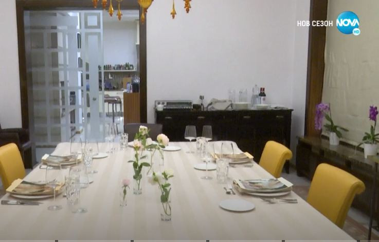 Естествено, домакинът посрещна гостите в личната си къща. Която съставлява голяма и красива сграда, обзаведена с доста жанр и усет в светли тонове.