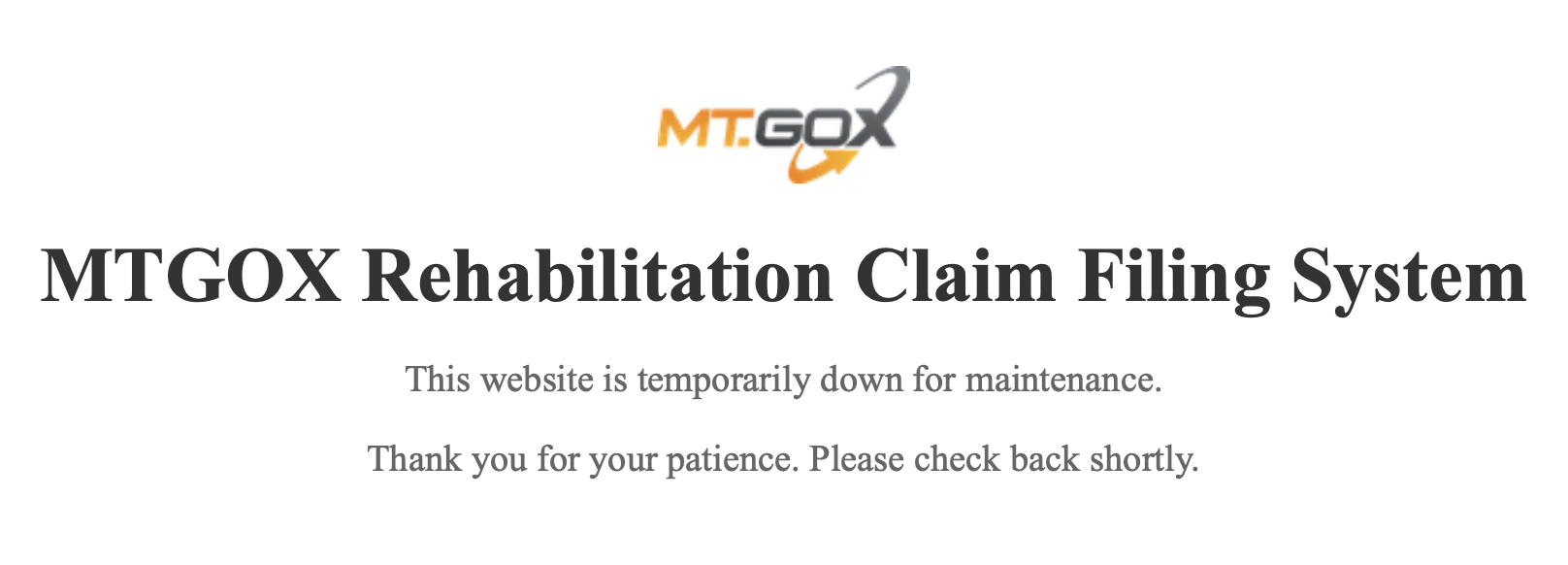 Освен това порталът за искове на Mt. Gox беше маркиран като „ “.