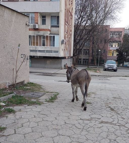 На любопитен посетител се натъкнаха жителите на Стара Загора тази заран. Те срещнали сиво магаре, което комплицирано обикаляло по улиците на града.