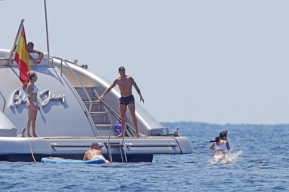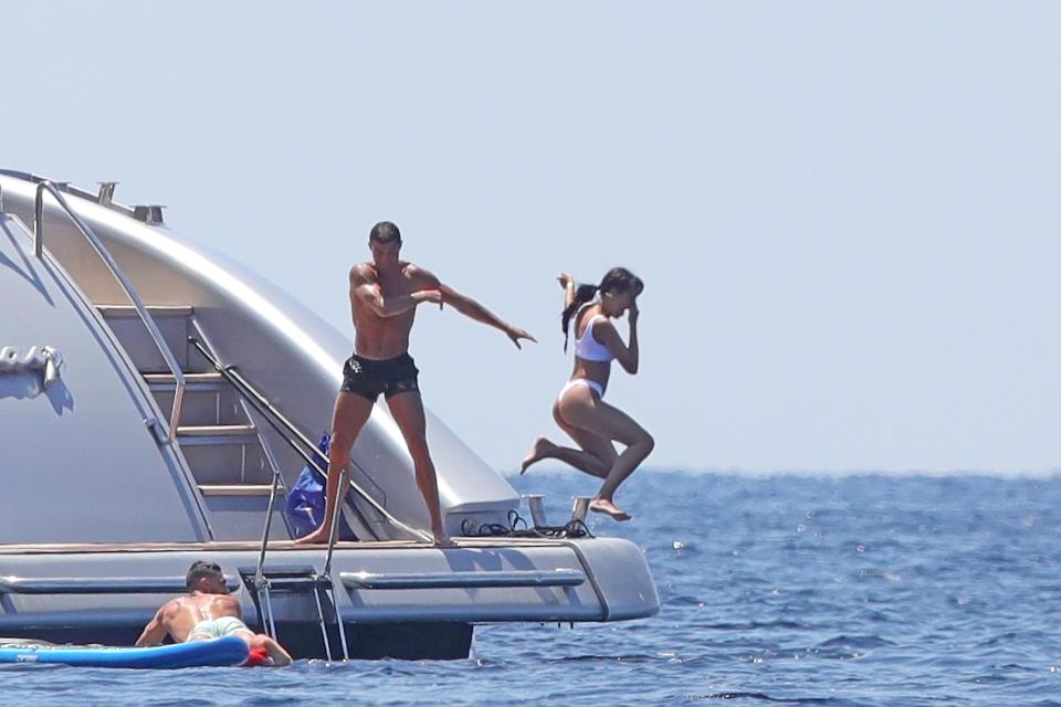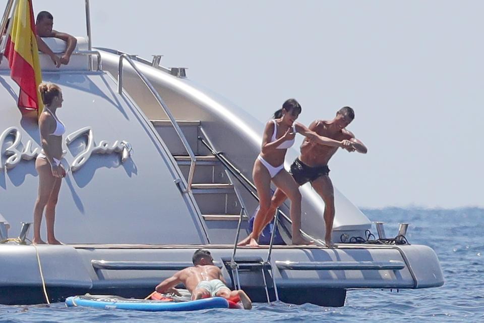 На любопитна панорама станаха очевидци приятелите на Кристиано Роналдо, които го придружиха по време на почивката му в Ибиса. Компанията отмаряше на яхта, а в един миг новото попълнение в редиците на Ювентус реши да се пошегува със своята нежна половинка Джорджина Родригес и я бутна в океана.
