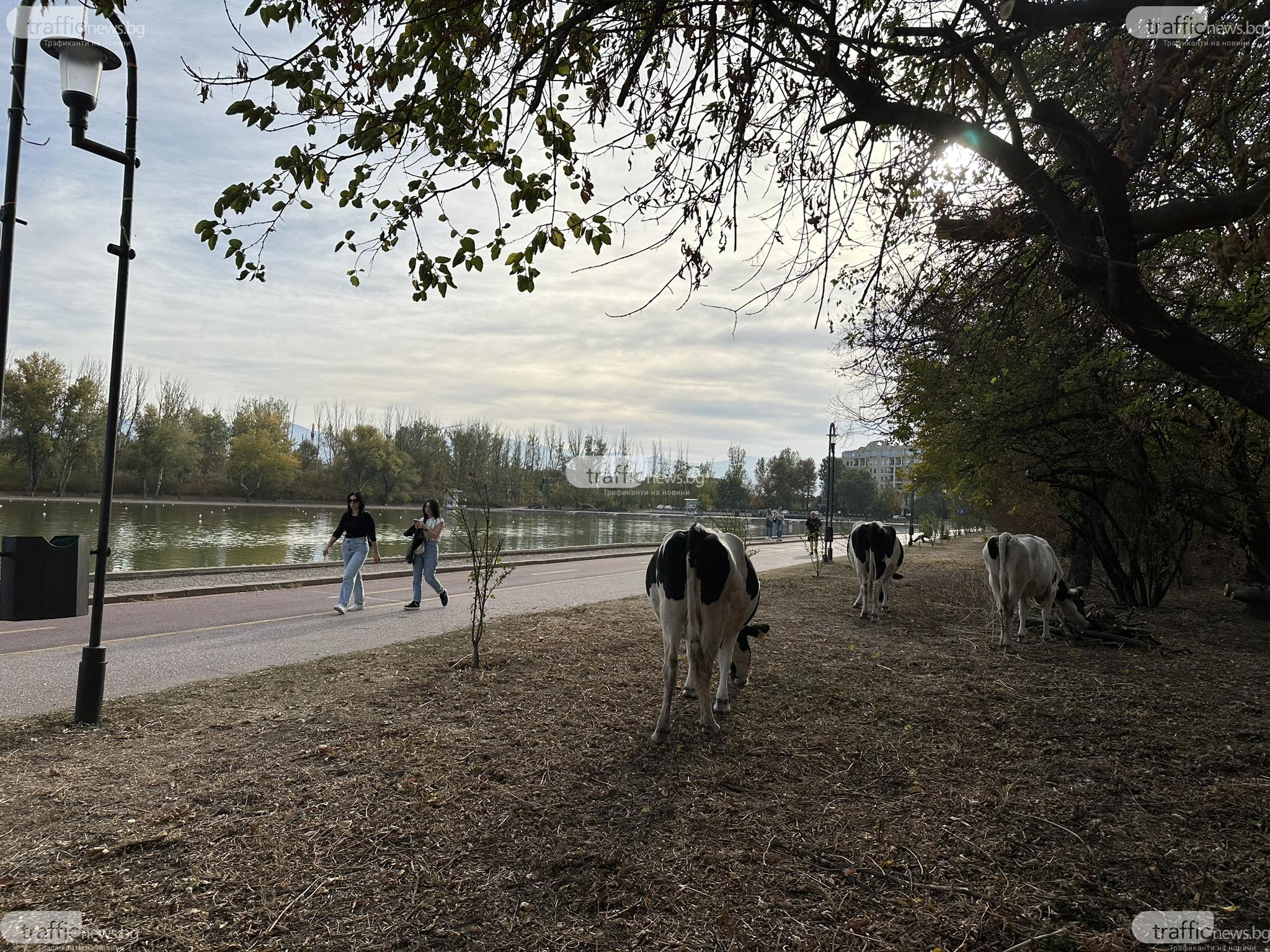 Разходка в Пловдив: Крави и овце кръстосват алеи на Гребна база