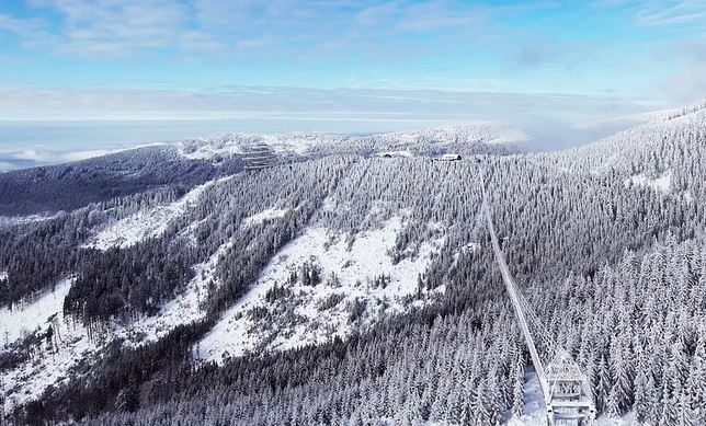Обектът е на 200 километра от столицата Прага и се намира на метри от друго рисково прекарване - 55-метрова дървена пешеходна серпантина, наречена Sky Walk, от която се открива панорама към природата.
