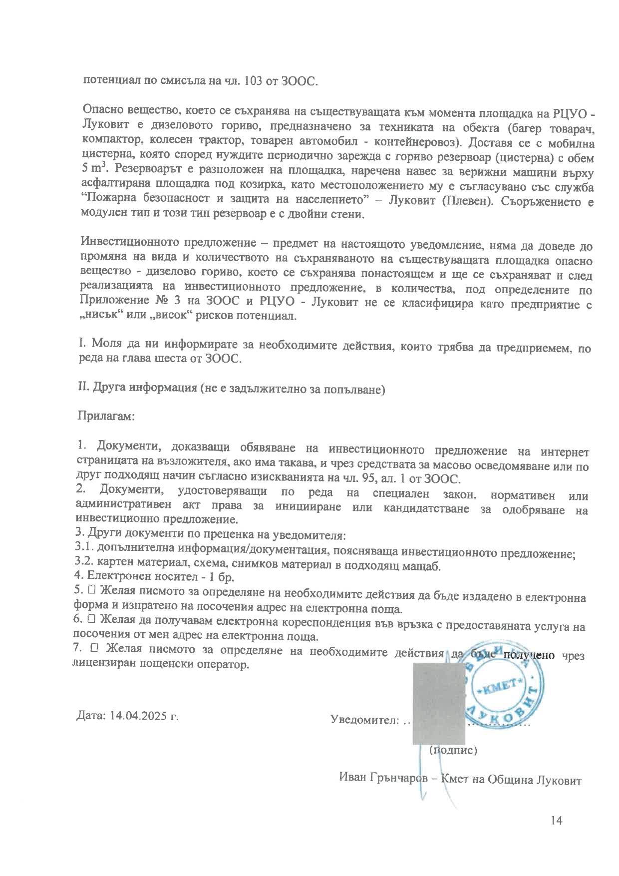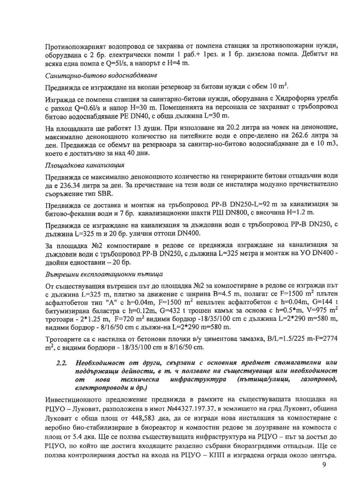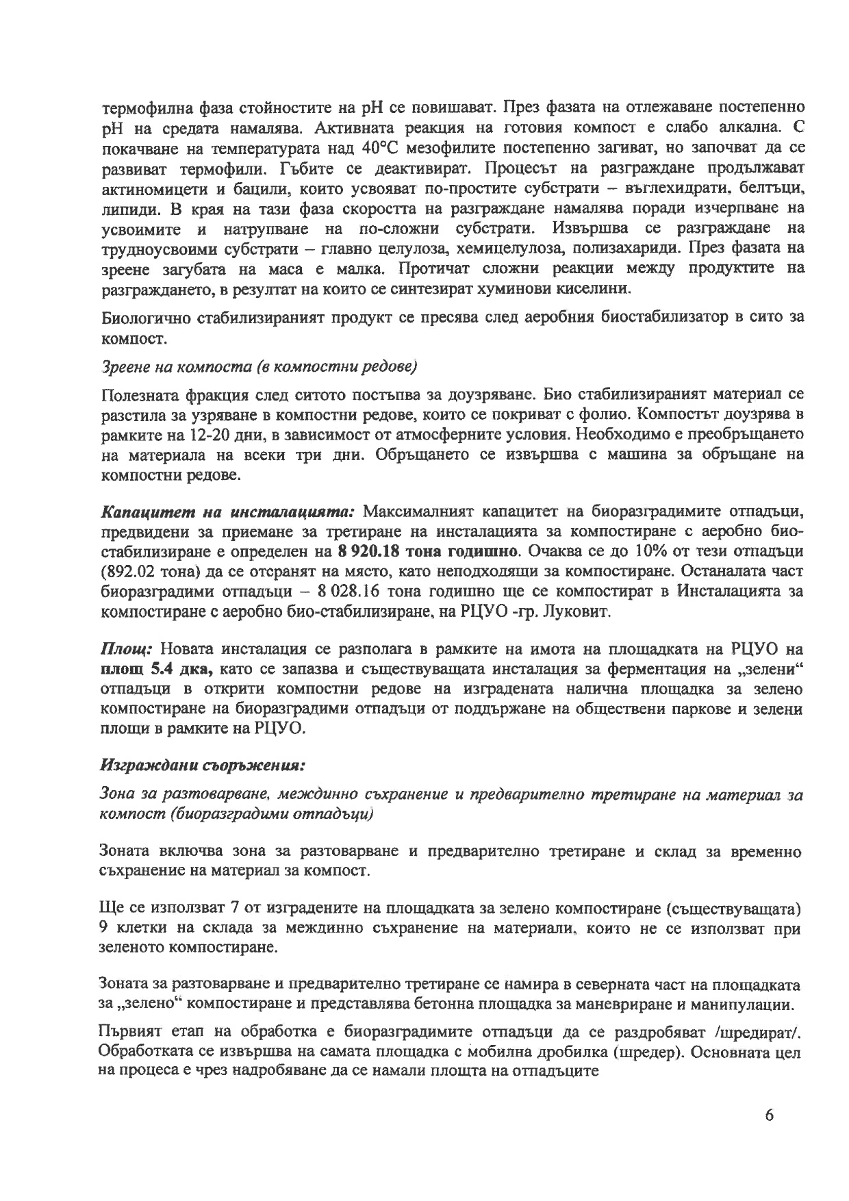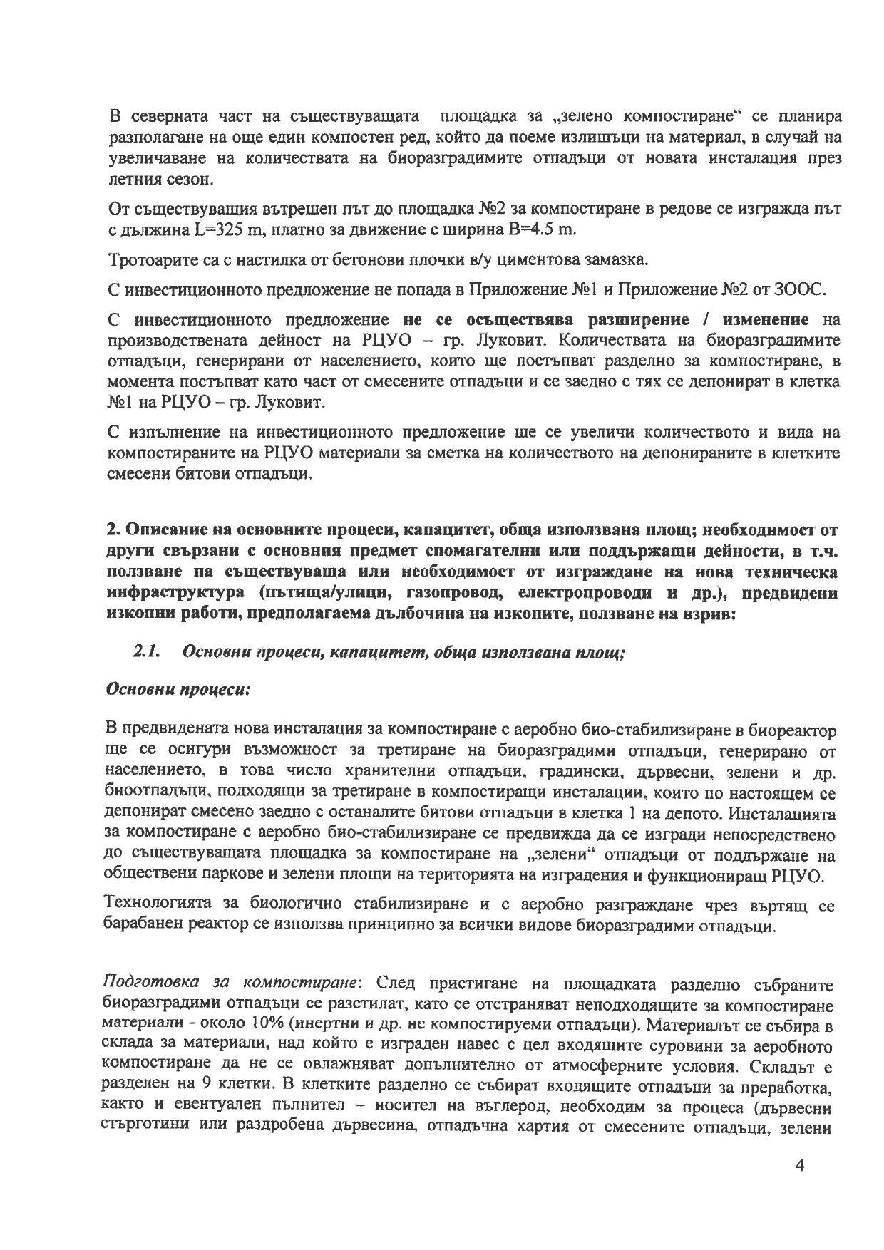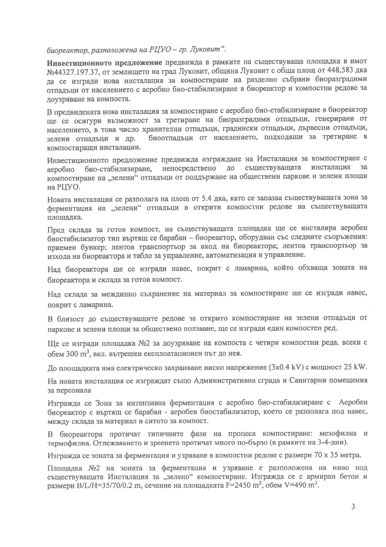 Уведомление за инвестиционно предложение на община Луковит за „Изграждане на инсталация за компостиране на биоразградими отпадъци с аеробно био-стабилизиране в биореактор“