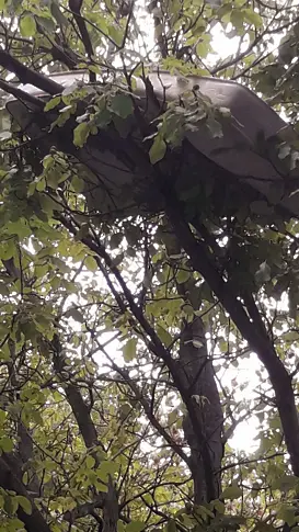 На плевенската улица „ Карлово “ – 9 в центъра на града, пред жилищен блок „ Преслав “ – 2 е хвърлен матрак от шестия етаж. Матракът е паднал върху клоните на дърво, където и е останал.