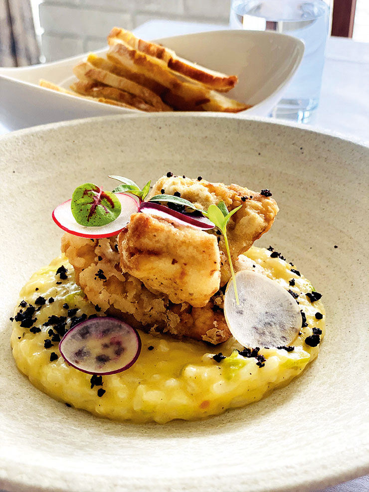 Пред очите ни подготвя красива паница с едно от най-харесваните и поръчвани предястия в ресторант Sintica – кьопоолу от зелен домат, в което майсторски са съчетани зелен домат, патладжан, чушка, чесън, пиперосана сланина, орехи и сирене Парнар. Специално за нас началник Лазаров подготви и свеж черноморски калкан, поднесен върху ризото с круша. Калканът е пържен, тъй като по този начин става най-вкусен, споделя той. Добавя трохи от маслини каламата и чипс от репичките, които преди малко набрахме от градината. Завършва ястието с микрорастения – киселец и латинка. Истински кулинарен шедьовър.Тук се държи извънредно доста на качеството на продуктите, на тероара и сезонността. Купува се от близки ферми и производители. Рецептите постоянно биват променяни съгласно сезона, а в оформянето на цялостното меню на ресторант „ Синти “ огромно присъединяване вземат и притежателите.