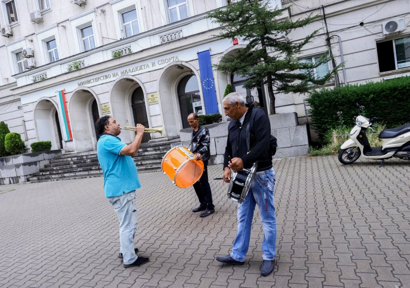 Ромски оркестър се появи тази заран пред институцията в центъра на София, а мургавите музиканти забиха няколко присъщи части пред входа на зданието.