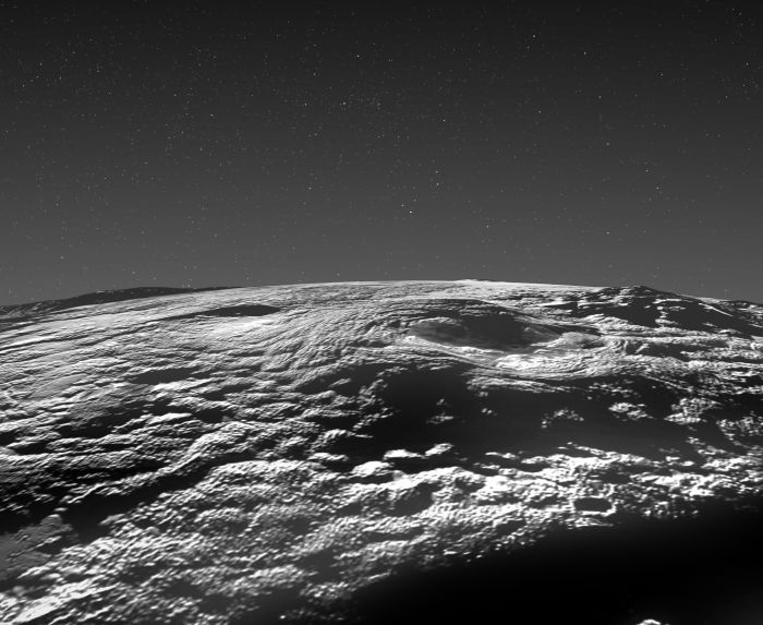 „ В един от районите, в които има напълно малко кратери, формирани от конфликти с други обекти, доминират големи възвишения с неравни скатове. Подобни характерности не се срещат на нито едно друго фотографирано място в Слънчевата система – пишат откривателите, ръководени от планетарния академик Келси Сингър от Севрозападния проучвателен институт. –Съществуването на тези солидни характерности допуска, че вътрешната конструкция и еволюция на Плутон спомагат или за по-доброто задържане на топлота, или че съществува доста повече топлота като цяло, в сравнение с се смяташе преди „ Ню Хърайзънс “.