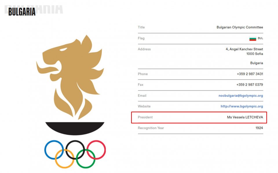 На уеб страницата на МОК като ръководител на БОК към този момент е записана Лечева