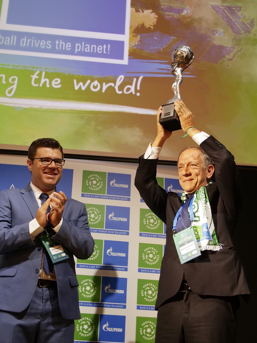 На церемонията по награждаването участваха участниците от предходния сезон на " Футбол за другарство ": Суен Драм (13 година, Франция), Катарина Барата (13 година, Португалия), Мигел Боржис (19 година, Португалия), Денис Аладев (13 година, Русия). Младите посланици споделиха с генералния секретар на Бразилската футболна федерация Валтер Фелдман и мениджъра техническо развиване и обществена отговорност на бразилския народен тим по футбол Диого Нетто историята и смисъла на неповторимия трофей.