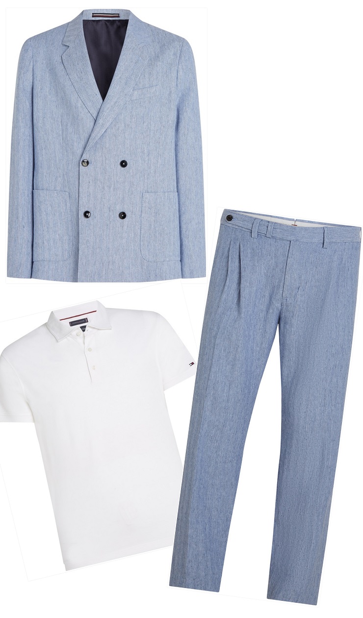 K остюмът Класиката в никакъв случай не излиза от мода, само че тук тя е актуализирана с пролетно-лятна лекост. Вариантът в светлосиньо прави визията дишаща и спокойна, еднообразно подобаваща за офиса, пътешестване или вечерен коктейл край морето.