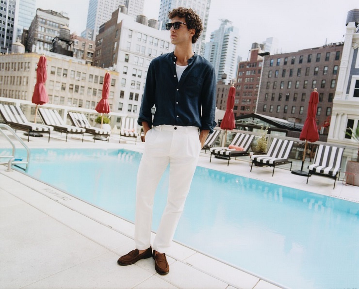 Ленът участва и тук Излишно е да се убеждаваме отначало в преимуществата на лена като материя за топлите дни и месеци. Само ще допълним, че той е също толкоз подобаващ за мъжкия дрешник, колкото и за дамския. В сбирката на Tommy Hilfiger ленът участва при панталони и ризи.Тази риза пресъздава морския дух с фини препратки и настояща линия. Може да се носи както закопчана под сако или тънък пуловер, по този начин и разкопчана върху тениска за небрежна, само че стилна визия. И в действителност не е една риза – има няколко варианти, трансформиращи райето в унисон с разнообразни желания.
