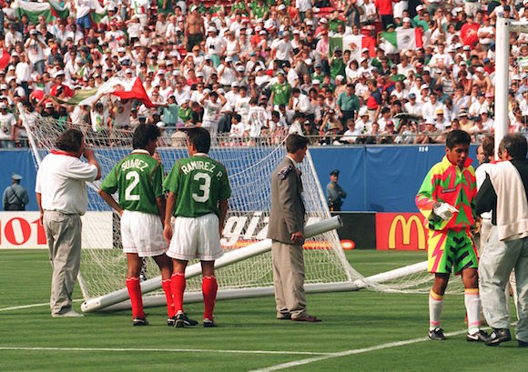 Интересното е, че този мач влиза в историята като първата среща, в която " лъвовоте " стигат до дузпи на Мондиал, а също по този начин и с куриозния факт, че вратата на Мексико е заменена през първото полувреме, защото се чупи.