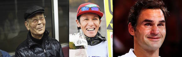 Вярно ли, Роджър? А аз си мисля, че тези, които откровено имат вяра, че възрастта е единствено цифра, постоянно също се трансформират в цифра. Цифрата „ 1 “. Затова измежду седемте милиарда хора на този свят има един Федерер, един Джиро и един Нориаки Касаи.