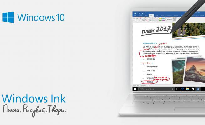 Windows Ink е една от новите и забавни функционалности на Windows 10. Работи отлично при всичи известни марки преносими компютри - Аsus, Acer, HP, Lenovo, само че наложително изискване е преносимия компютър да има тъч скрийн и цифрова химикалка.