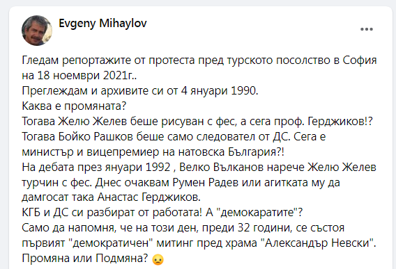 Тогава Желю Желев беше рисуван с фес, а в този момент проф. Герджиков!?