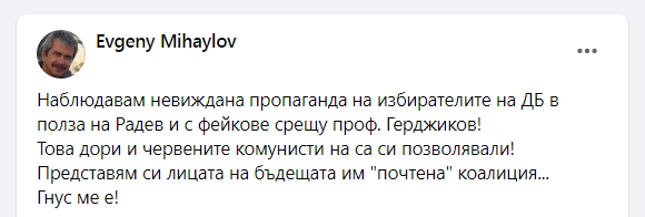 Евгений Михайлов: Невиждана пропаганда на ДБ в полза на Радев и фейкове срещу проф. Герджиков! Това дори и червените комунисти на са си позволявали. Гнус ме е!