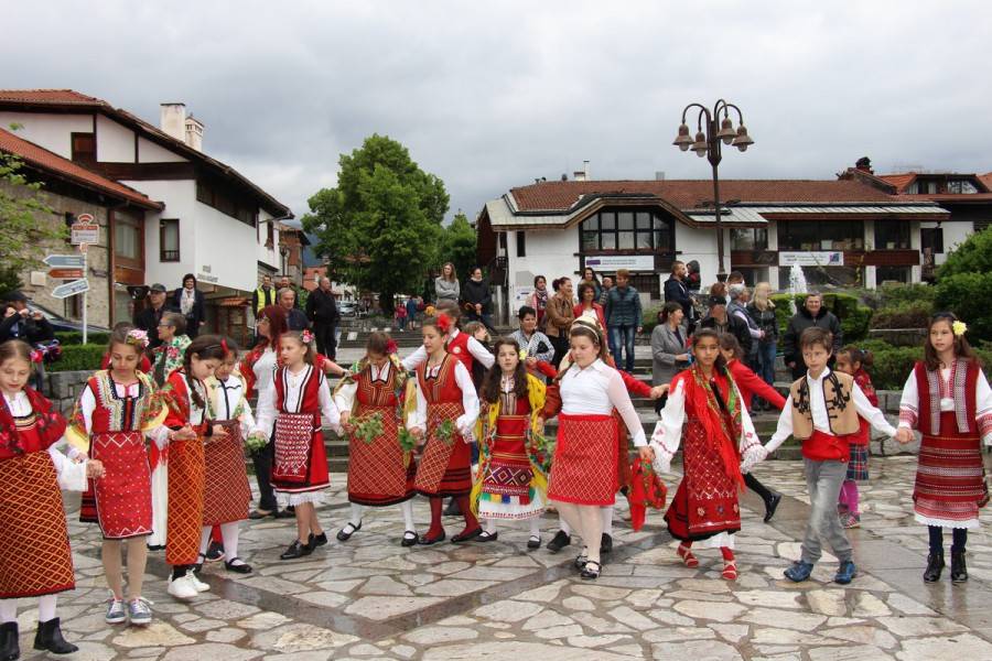 Така на Деня на Светите равноапостолни братя Кирил и Методий, площадът в Банско се извърши с танцуващи български национални танци хора. Към дребните възпитаници се включи също кметът на планинската община Георги Икономов, родители и поданици на града.