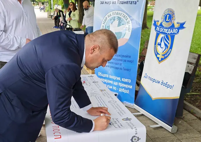 Начало на план за основаване на най-дългото обръщение за мир на планетата бе сложено през днешния ден в Плевен. Инициативата е на Лайънс клуб " Огледало " - Плевен, взаимно с Лайънс клуб " Дунавски братя " и Лео клуб " Олимпиец ".