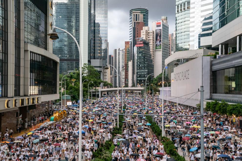 Hundreds of thousands of protesters spanned more than a mile in Hong Kong in a display of anger and fear over a government proposal that could allow extraditions to mainland China