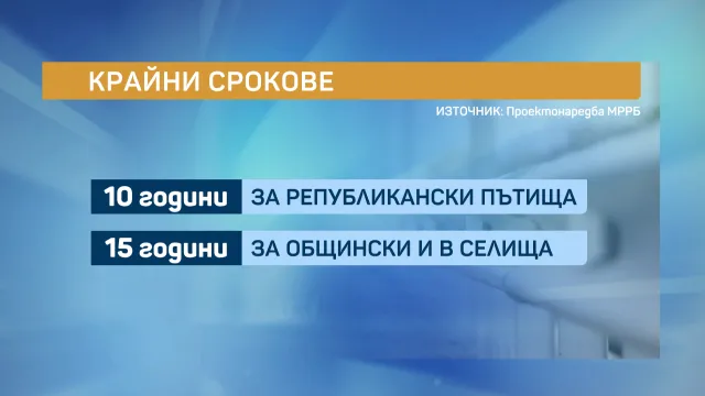 За републиканските пътища срокът това да се случи е 10 години, а за общинските и в обитаемоте места – 15 години.