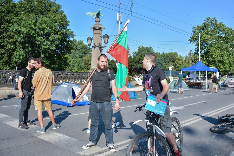 „ Елате да обядваме дружно. Може и плаж да създадем, само че си вземете висок фактор против слънцето. Въздухът е чист тази заран, поради неналичието на движение „, изясняват протестиращи от Граждански площад.
