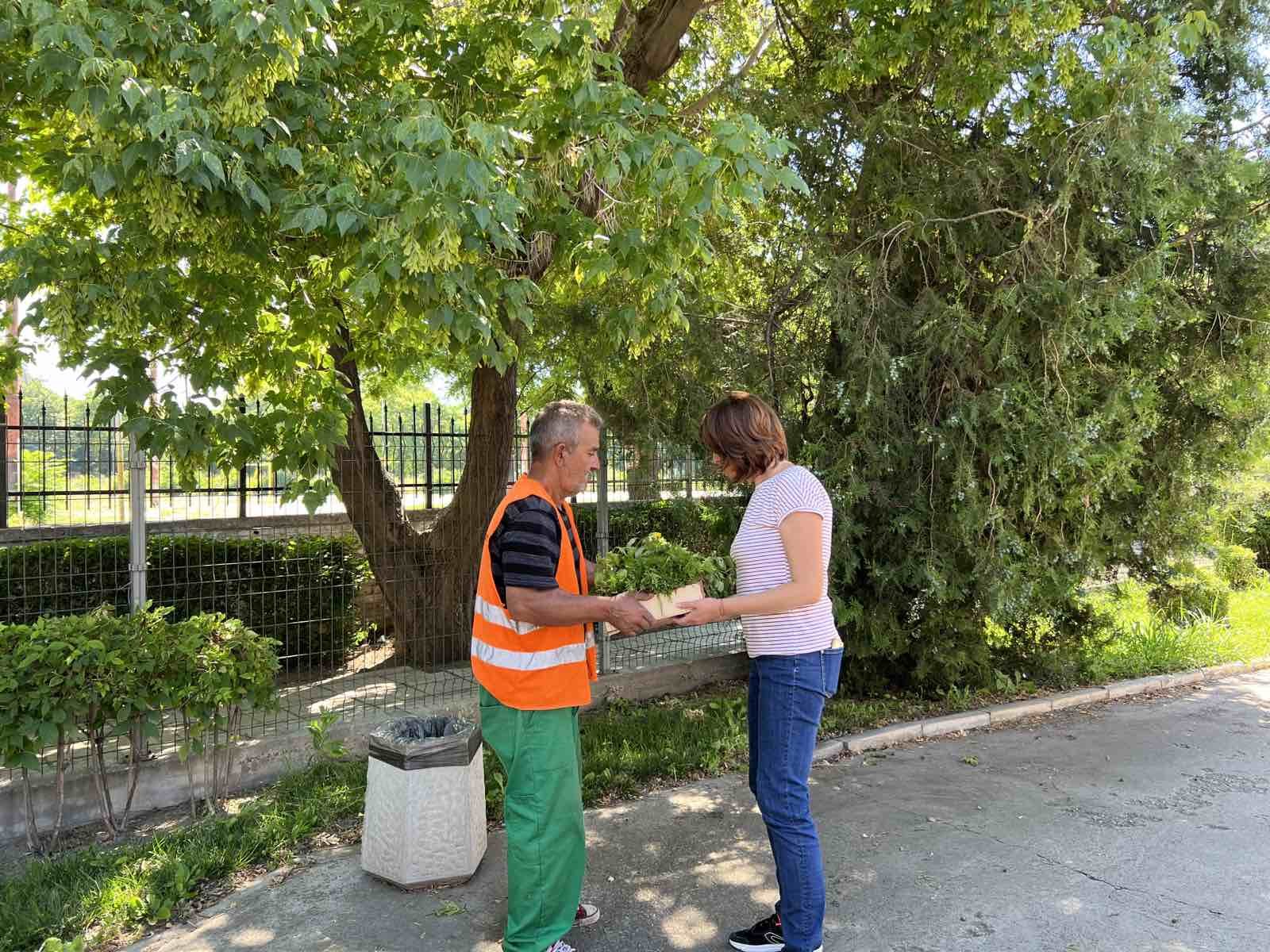 На Еньовден чиновници на общинското дружество занесоха първите над хиляда стръка тагетис и далия в детските градини „ Рая “, „ Елица “ и „ Валентина “. Тази седмица цветя ще получат и останалите детски и образователни заведения, които при авансово направеното питане са декларирали предпочитание и опция да се грижат за растенията.